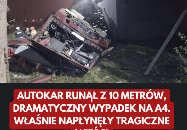 Na autostradzie A4 w okolicach Zgorzelca, doszło do dramatycznego zdarzenia, które poruszyło całą Polskę. Autokar jadący w stronę Niemiec nagle przebił bariery ochronne i spadł z wiaduktu. Choć w pojeździe znajdował się tylko kierowca, skala zniszczeń i dramatyzm sytuacji były ogromne. Mężczyzna zmarł w szpitalu, a śledztwo wciąż nie przyniosło jednoznacznych odpowiedzi.