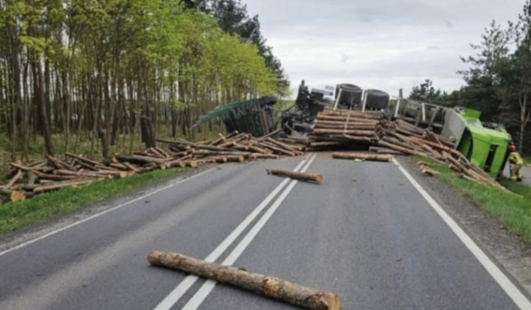 Drogowy horror rozegrał się w piątek, 12 kwietnia w miejscowości Mokre. Tuż za skrzyżowaniem ciężarówka zderzyła się z fordem. Kolos z przyczepą, przewrócił się na bok. Na drogę rozsypały się przewożone kłody drewna. Osobowy ford wpadł do rowu.