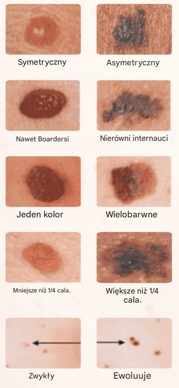 Jeśli jakikolwiek pieprzyk spełnia te kryteria, należy natychmiast udać się do lekarza.